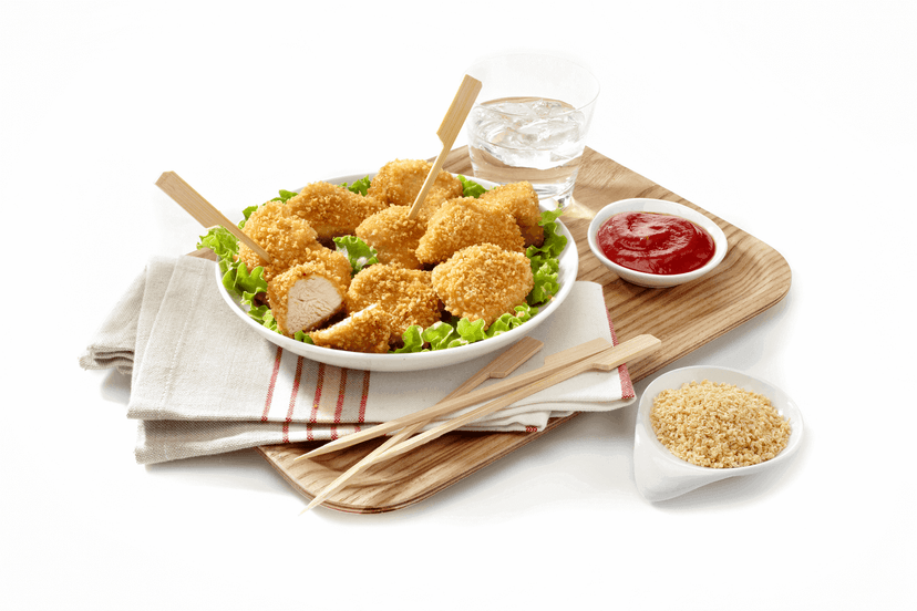 Available in various particle sizes, gluten-free breadcrumbs can be used as a coating in breading and batter applications, providing superb crunch and crispy texture. In addition, they can be used within a ground product recipe to replace breadcrumbs as a filler or rusk. Gluten-free breadcrumbs are ideal for vegetarian or vegan alternatives to traditional meat products, such as plant-based chicken nuggets, patties, meatballs, etc. When used as a filling, the gluten-free breadcrumbs can bind water and fat and enhance the juiciness of the product. When used dried, their crunchy texture is perfect for gluten-free coatings and produces a homogeneous golden yellow color after cooking.