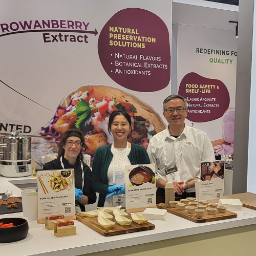 One of the highlights at the A&B Ingredients booth was our ability to demonstrate the functionality of our ingredient solutions in demo products like plant protein-fortified Asian Dumplings and reduced-sugar Caramel Bites. We were thrilled to share insights from our R&D efforts and showcase how our ingredients perform in real-world applications. Seeing firsthand how our solutions enhance product quality and meet consumer needs was a rewarding experience for both our team and our visitors.